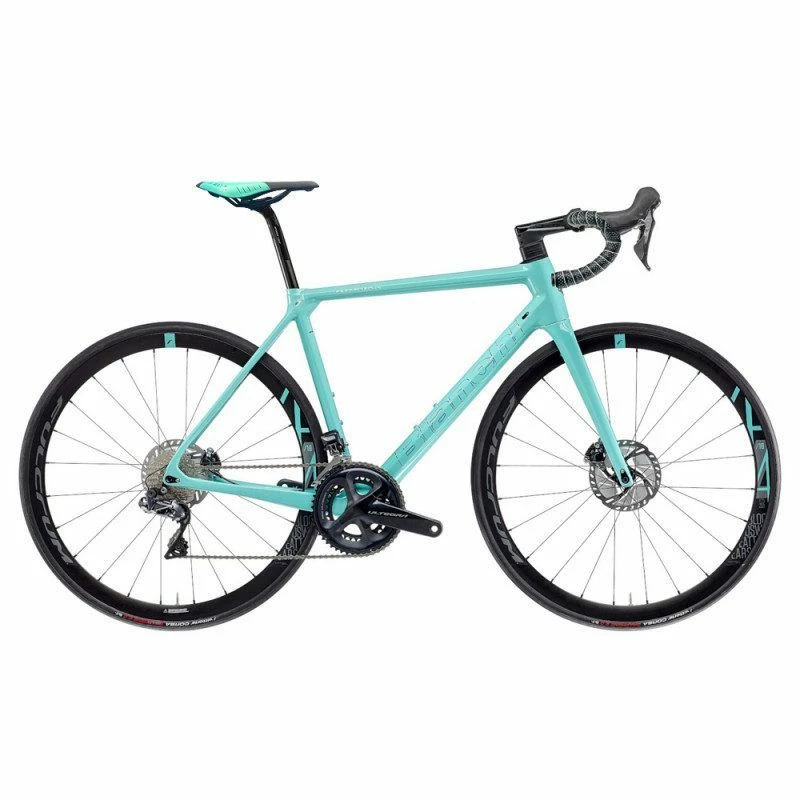 Caractéristiques techniques : – Cadre Bianchi Specialissima Disc carbone – Potence : FSA NS ACR di2 compatible – Longueur potence : 90mm (47/50), 100mm (53), 110mm (55/57), 120mm (59), 130mm (61) – Cintre : FSA Energy SCR Compact (31.8mm, drop 125mm, reach 80mm) – Tige de selle carbone – Selle : Fizik Antares R7 – Axes : 12x100mm / 12x142mm – Groupe : Shimano Ultegra ST-R8020 2x11v disque hydraulique – Pédalier : Shimano Ultegra FC-R8000 50x34T – Longueur manivelles : 165mm (44), 170mm (47/53), 172.5 (55/59), 175mm (161) – Cassette : Shimano Ultegra CS-R8000 11v 11-30 – Dérailleur arrière : Shimano Ultegra RD-R8000 11v – Dérailleur avant : Shimano Ultegra FD-R8000 – Chaine : Shimano Ultegra CN-HG701-11 – Boitier de pédalier : Shimano SM-BB72-41B PressFit – Freins : Shimano BR-R8070 – Disques : Shimano SM-RT800 CenterLock 160mm – Roues : Fulcrum Racing 400 DB, 622x19c, 2 Way Fit, Tubeless Ready – Pneus : Pirelli Pzero Race 26mm – Tailles : 47/50/53/55/57/59/61 – Coloris : vert Bianchi (Mermaid Scale Full Glossy) – Référence : YRBY7SC – Marque : Bianchi